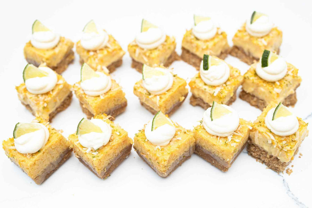One bite of these tasty bars will have your mind drifting away to a tropical paradise! This dessert packs a citrus punch by combining orange, lemon & lime in its creamy filling. The crunchy coconut & graham cracker crust provides the ideal texture & flavor to round out this decadent bar. Top with fresh whipped cream or citrus zest to elevate this dessert even further. Better yet - bring to a weekend barbeque & watch this treat disappear!