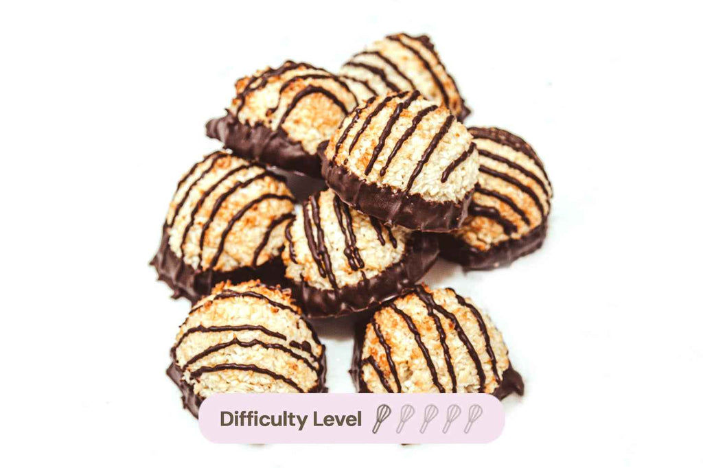 If you’re searching for an easy cookie recipe with amazing flavor & texture - then look no further. The star of these macaroons is shredded coconut, sweetened with light golden syrup. The end result is an airy & delicate cookie - complete with a crispy exterior & a chewy interior. Dip & drizzle the cookies with melted chocolate to elevate this extraordinary tasting bake even further. This homemade sweet treat is sure to become one of your most popular cookie recipes!
