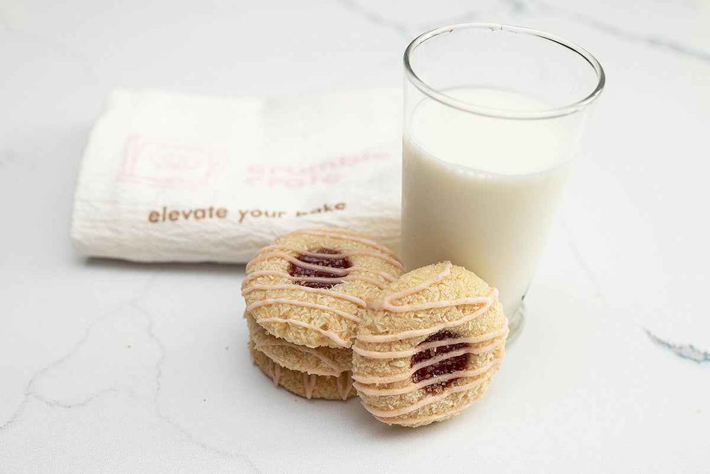 This riff on a classic thumbprint cookie takes on a Caribbean twist with its exotic guava jelly filling and shredded coconut exterior. The tropical experience is punctuated with a dusting of demerara sugar and drizzling of guava infused royal icing. This delicate, buttery cookie is a tropical paradise in a bite! Bring to your next celebration or gathering and dazzle your family and friends with these striking little gems - unique, gorgeous and irresistible!