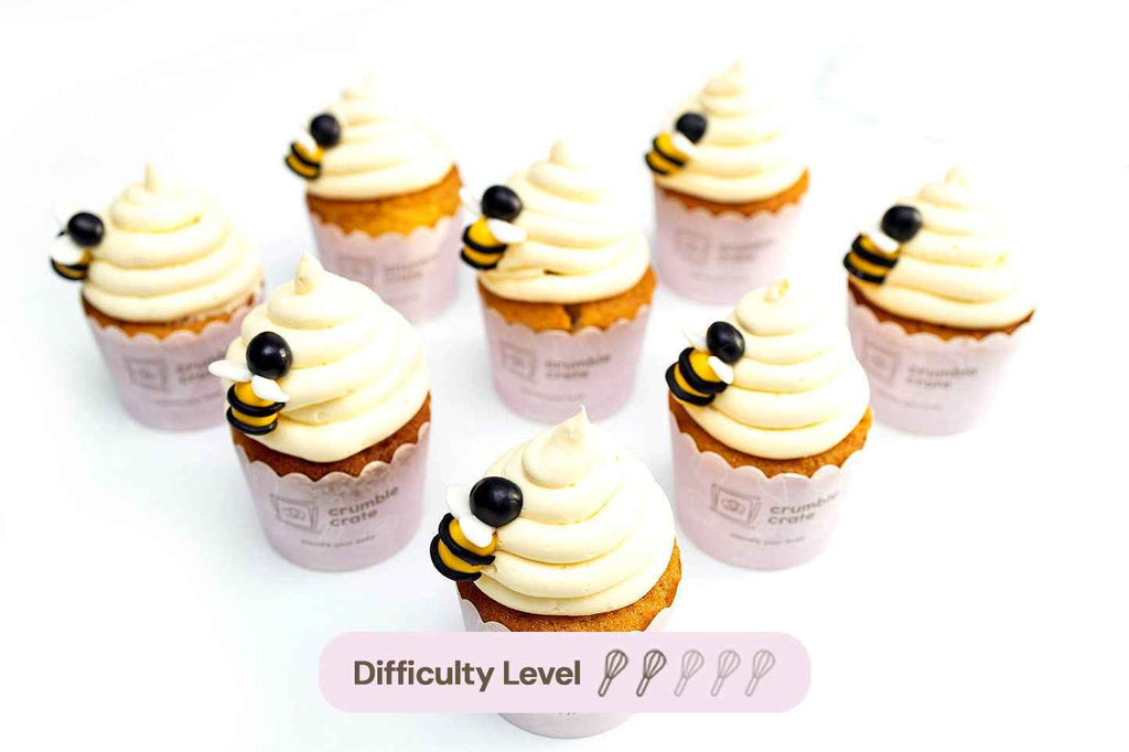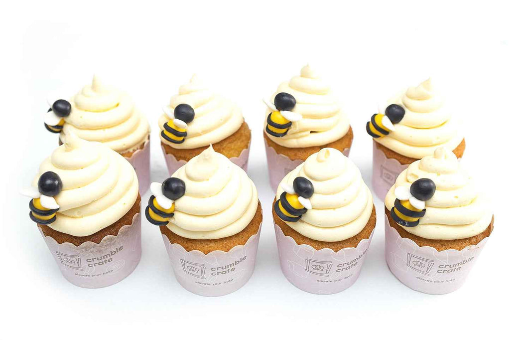 Spring brings colorful flowers in bloom & busy bees collecting nectar to produce rich, golden honey. A natural sweetener, honey also provides moistness & a depth of flavor to baked goods. These cupcakes celebrate the floral aromas of honey complimented by the citrusy notes of oranges in both the batter & the buttercream. Topped with an adorable, edible hand crafted bee, these cupcakes will create quite the buzz when served at your next celebration!