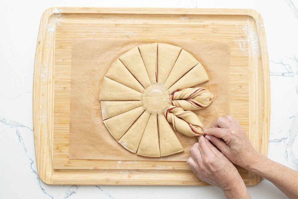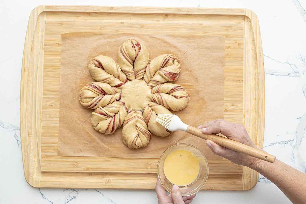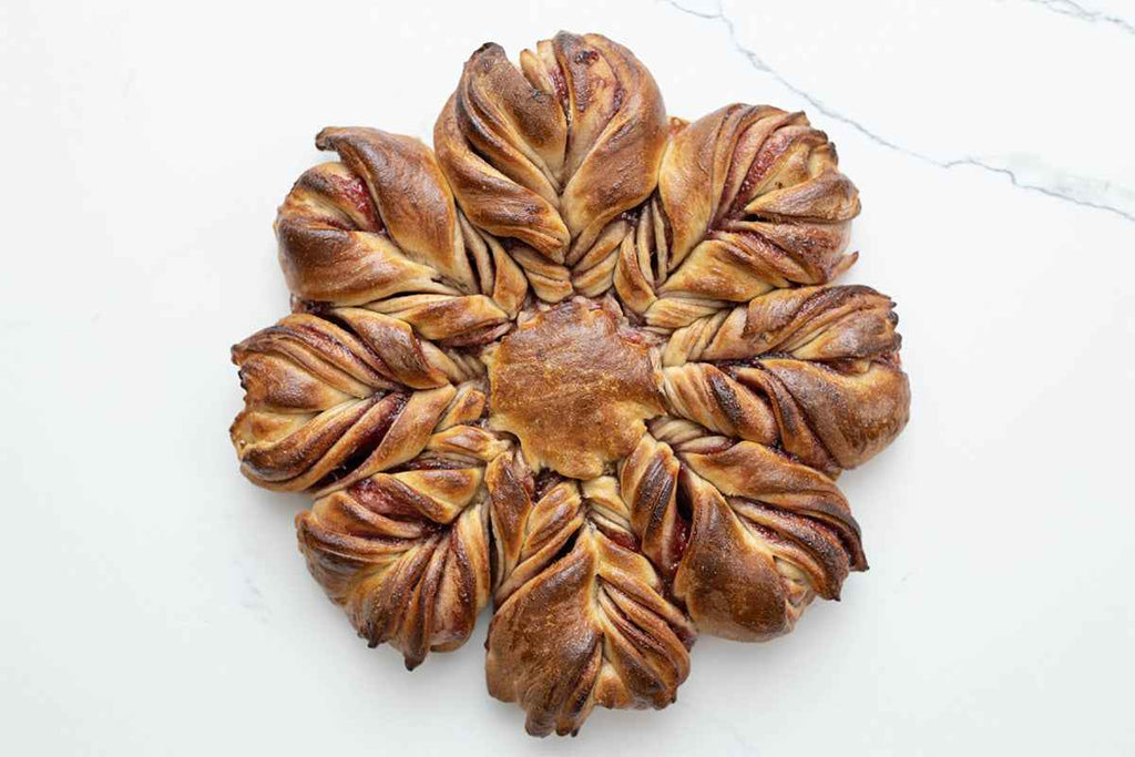 There is no denying it - this sweet bread was made to be a star! Bright raspberry jam is tucked in between thin layers of dough infused with warm winter spices such as cardamom, cinnamon & ginger. The dough is cut, twisted & shaped to form an intricate star pattern with mesmerizing swirl details. This pull-apart bread is a show-stopping centerpiece that is perfect for your holiday table. Come learn the secrets to creating this festive treat!